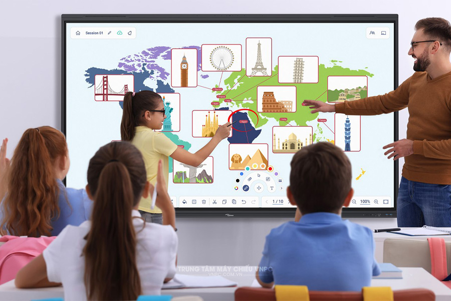 - Khả năng cảm ứng đa điểm chính xác cho phép giáo viên và học sinh tương tác trực tiếp, viết vẽ và thao tác mượt mà ngay trên màn hình.