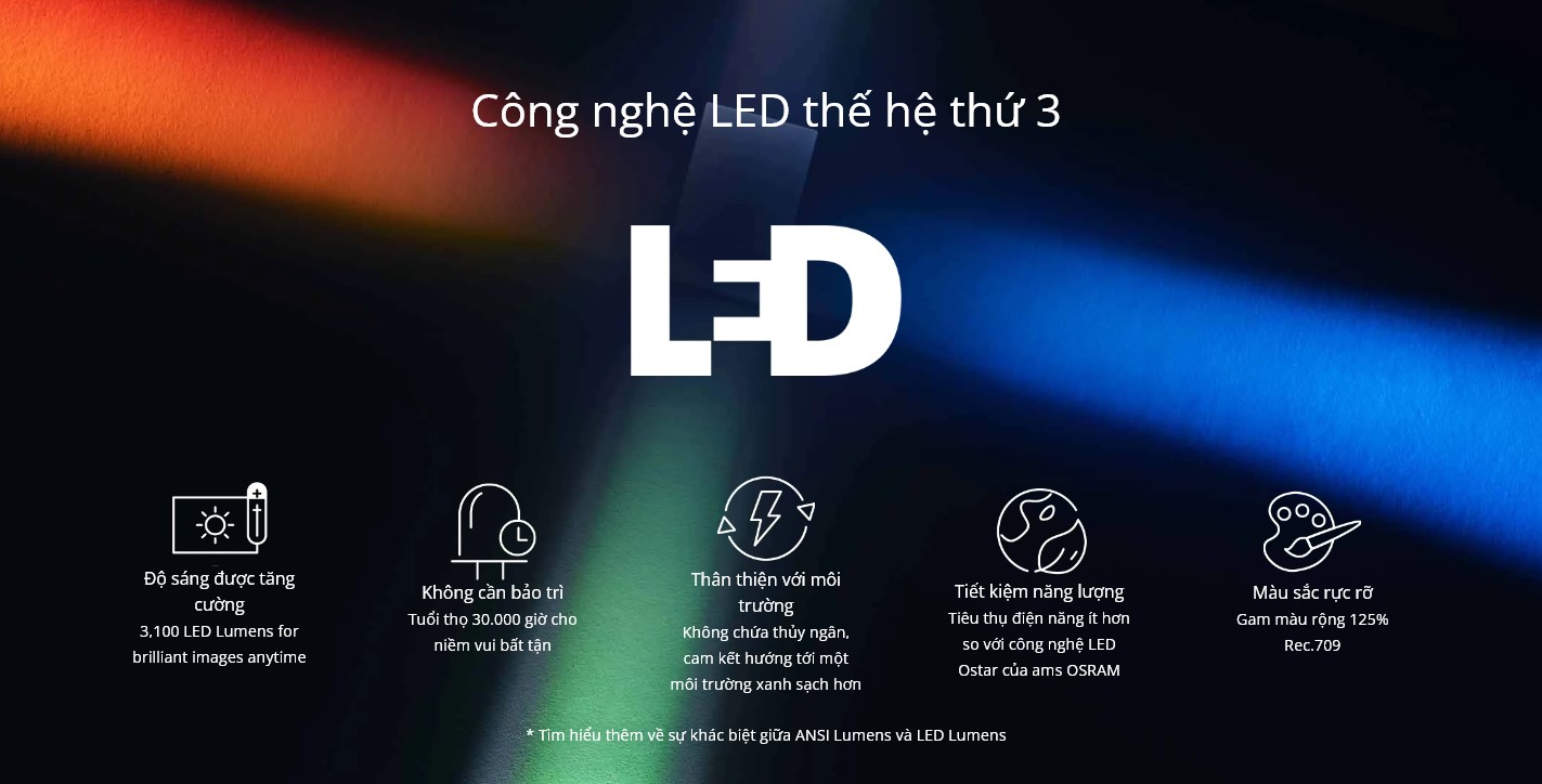 – Độ sáng 3.100 LED Lumens cho hình ảnh sáng và rõ nét trong mọi môi trường