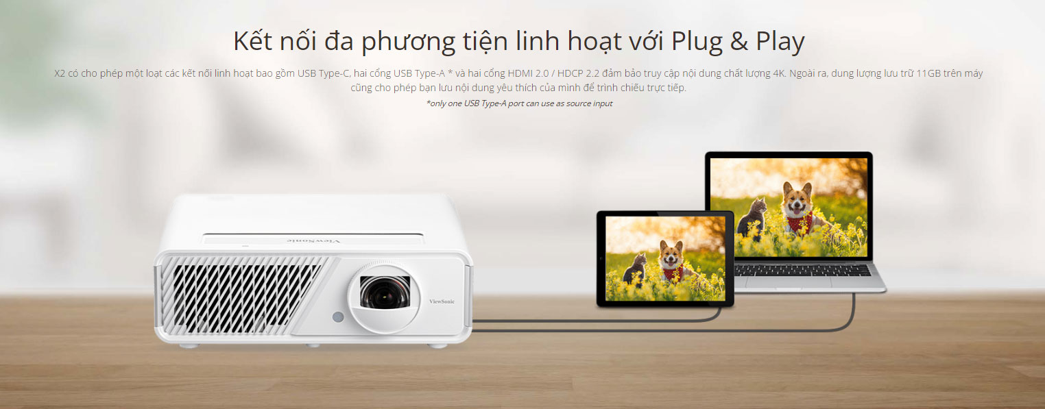 Máy chiếu Full HD Viewsonic X1 với công nghệ LED thế hệ thứ 3 và độ sáng 3.100 LED Lumens, máy chiếu X1 mang lại trải nghiệm giải trí ngay lập tức trên màn ảnh rộng. Với màu sắc điện ảnh sống động (độ phủ màu 125% Rec.709) và tuổi thọ ấn tượng lên đến 30.000 giờ, không cần thay đèn thường xuyên và không có rủi ro tiếp xúc thủy ngân độc hại. Đây là model máy chiếu thông minh độ sáng cao, không sử dụng bóng đèn truyền thống, là lựa chọn nâng cấp cho bất kỳ nhu cầu giải trí gia đình nào.