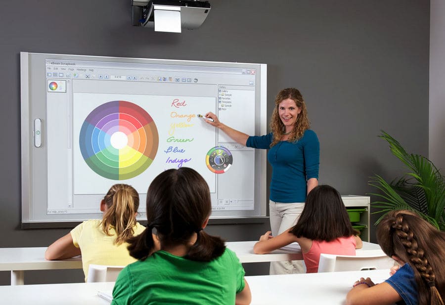 Giáo viên có thể trình chiếu câu hỏi hoặc tình huống để thảo luận, cho học sinh quan sát video và đưa ra ý kiến phản biện. Đồng thời kết hợp máy chiếu với các thiết bị hỗ trợ như bút trình chiếu hay màn hình tương tác.